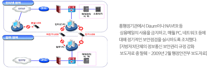 < 망분리 개념도 [국가기관 망 분리 구축가이드 중 발췌 - 2008년 5월] >